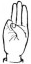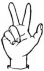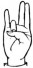 На ћирилици написано РУМЕНА ПЕШТЕРАЦ састоји се из 14 слова [?]. Исписано ћириличном једноручном азбуком за глувонеме: